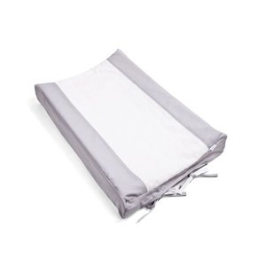 Grijze gewatteerde jersey hoes voor een aankleedkussen, afgewerkt met grijze bies. Artikel uit de Essentials Pearl Grey collectie. Van het merk First (My First Collection).
