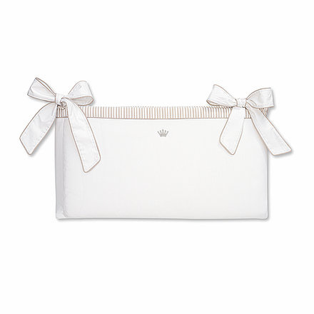 Exclusieve, dubbelzijdige bedomrander in wit / beige gestreept katoen. De vulling aan de binnenkant kan, voor het wassen, eenvoudig worden verwijderd door de ritssluiting aan de onderkant. Artikel uit de Ethnic White collectie. Van het merk First (My First Collection).