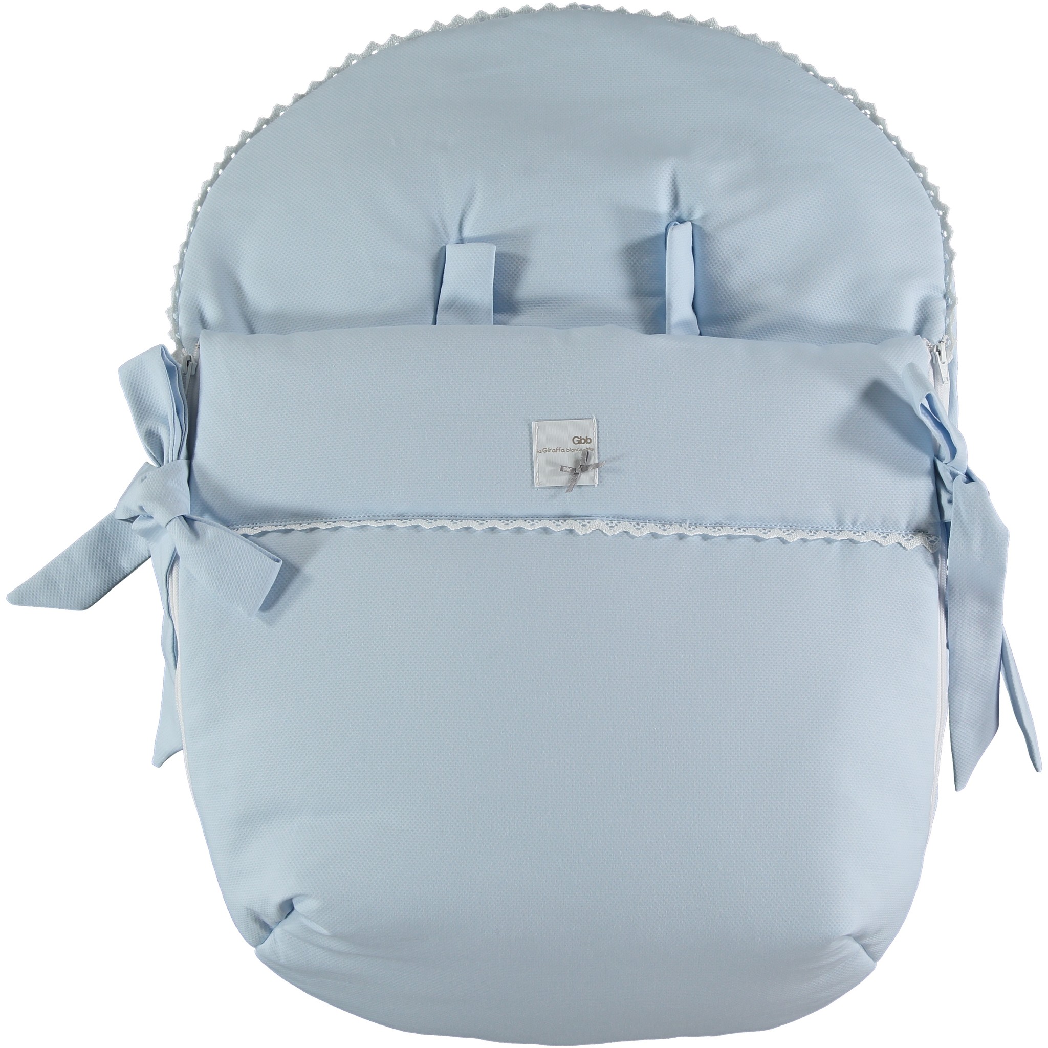Elegante Maxi Cosi hoes van het merk GBB, de hoes heeft twee sierlijke strikken aan de zijkant & is afgewerkt met een sierlijke witte bies