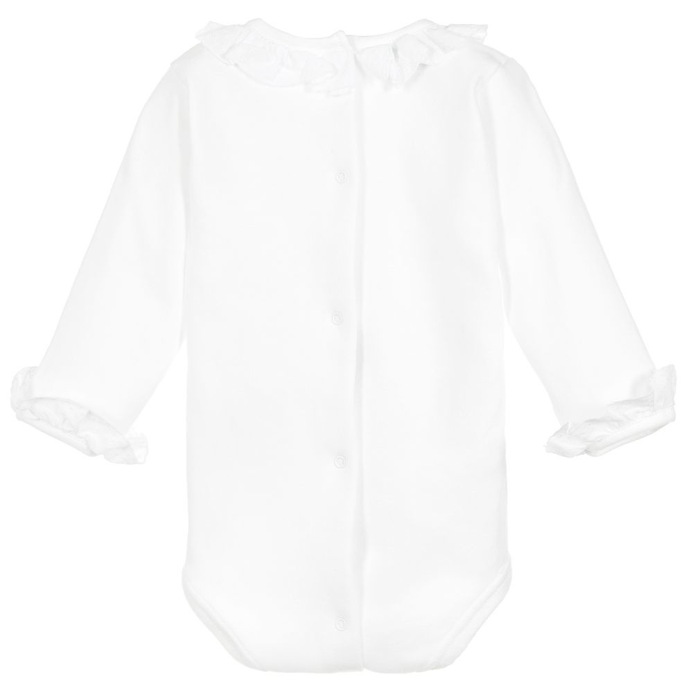 De romper/body is van super zacht katoen en is afgewerkt met een sierkraag en manchetten.