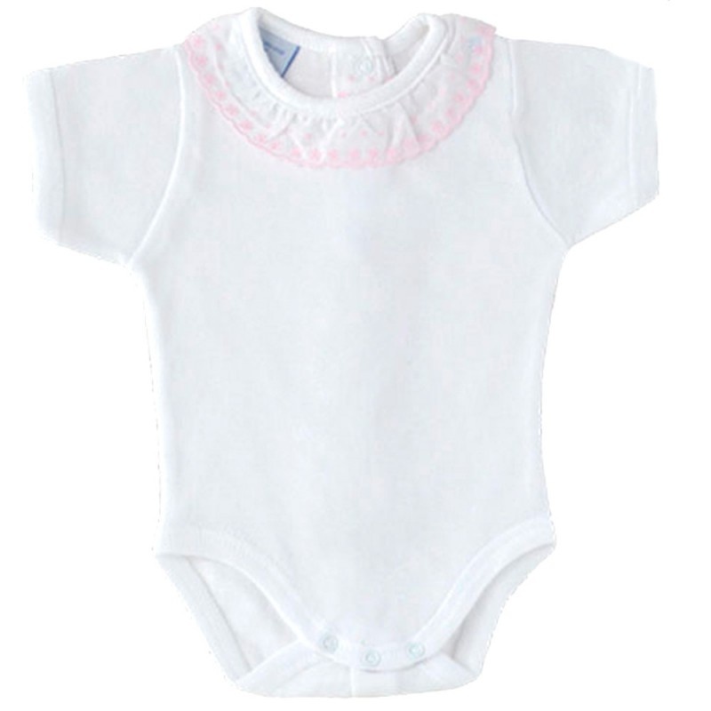 De romper/body is van super zacht katoen en is afgewerkt met een popeline kraagje in de kleur lichtroze.