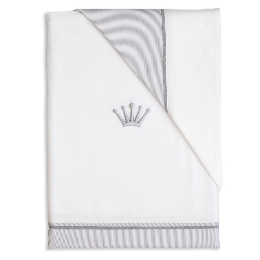 Dekbedovertrek & kussensloop in gestreept katoen afgewerkt en grijze biezen. Artikel uit de Essentials Pearl Grey collectie. Van het merk First (My First Collection).