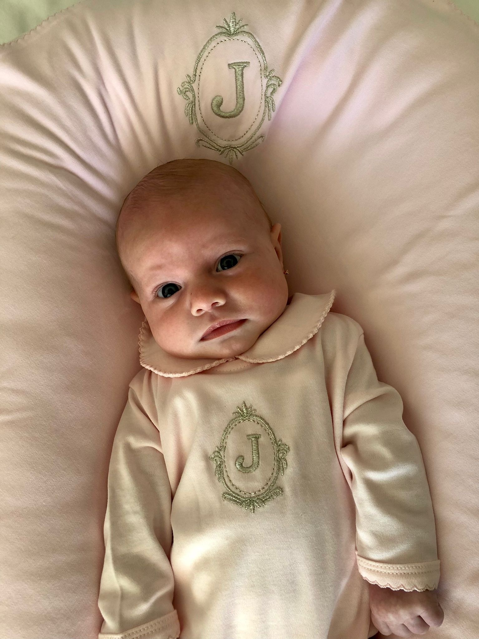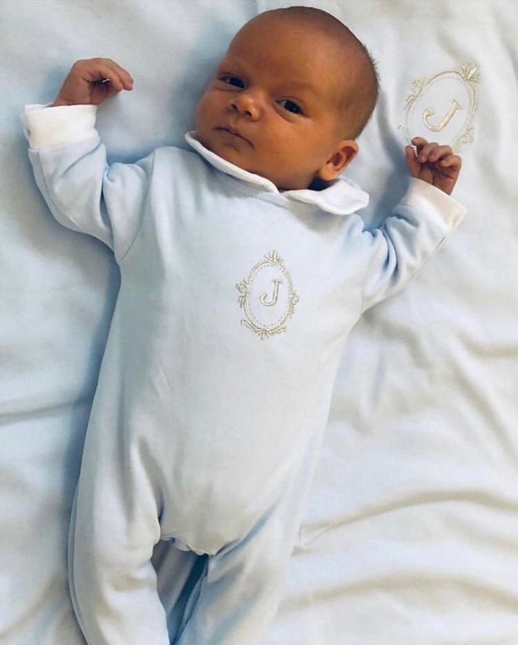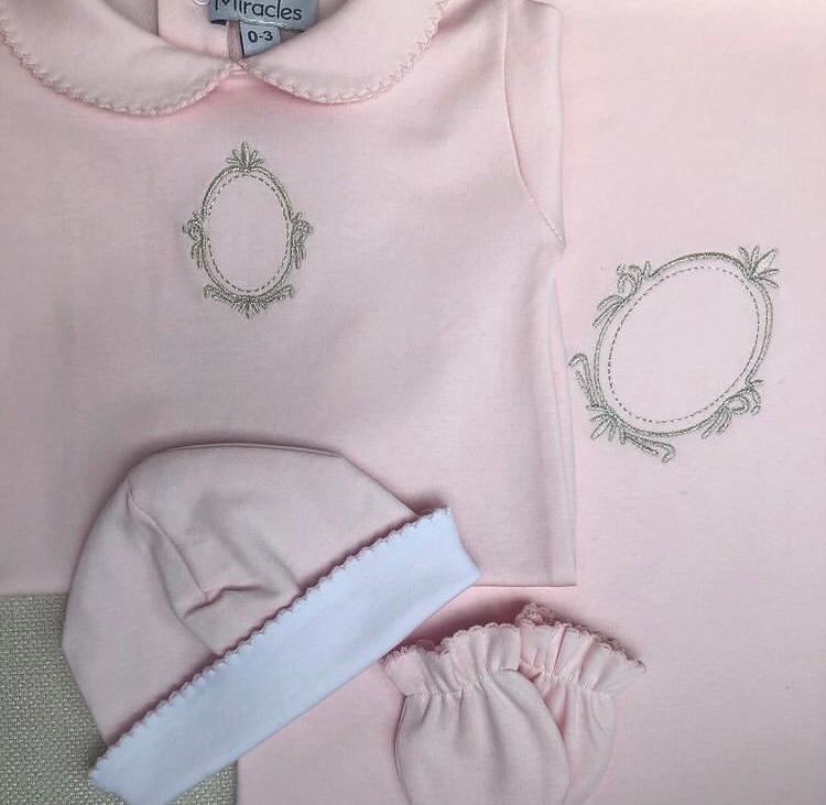 Mooie, te personaliseren, set bestaande uit een pakje, mutsje, wikkeldeken en handschoentjes. Het pakje kan in blauw en roze besteld worden met de keuze uit 1 letter.