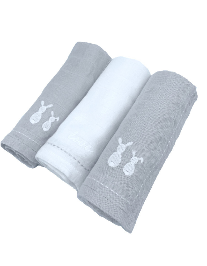 Deze hydrofiele doekjes zijn multifunctioneel, je kunt ze gebruiken als spuugdoekje maar zijn ook fijn om je kindje mee af te drogen na zijn of haar badje. Uiteraard ook handig om te gebruiken onder het hoofdje bijv. in de box het bedje of de kinderwagen. Ze zijn per 3 verpakt in een mooi doosje