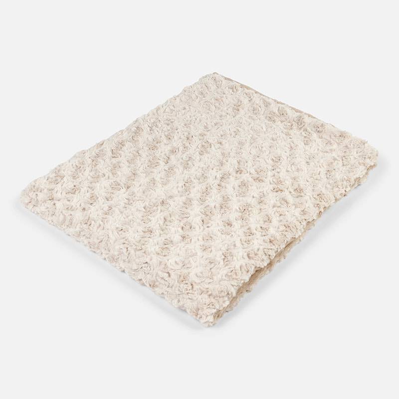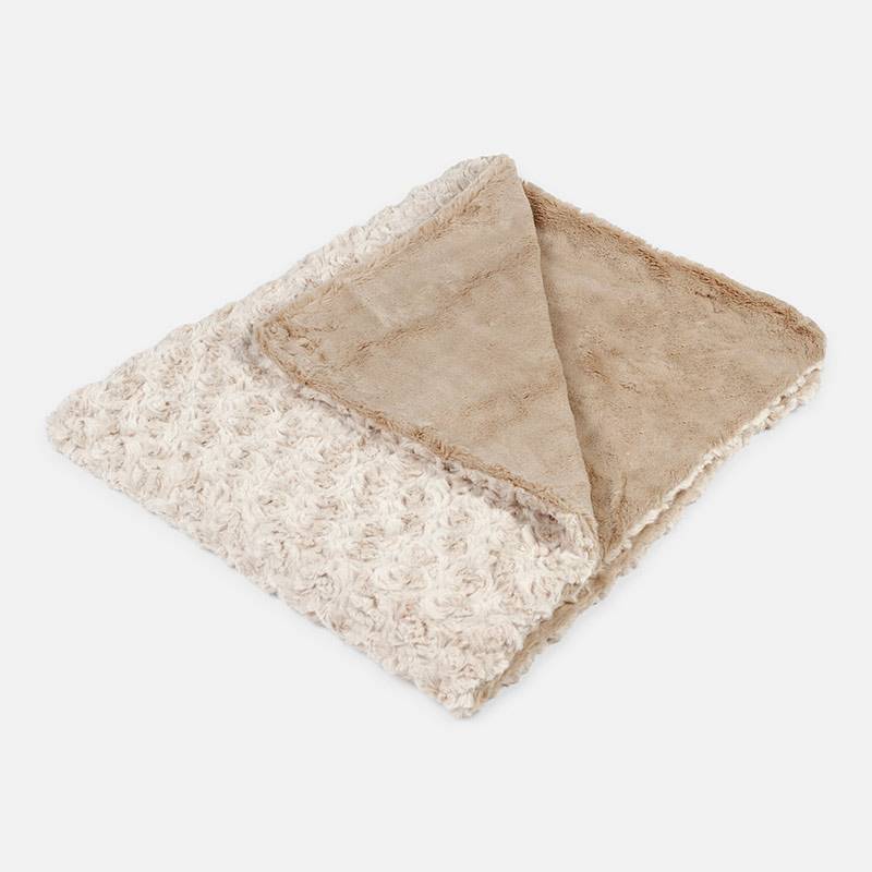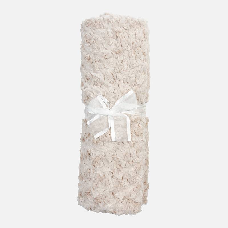 Superzachte, warme deken waarmee de baby zich ingepakt en beschermd voelt als hij gaat slapen. Buitenstof is geborduurd met rozetten. Zachte en gladde stof van imitatiebont aan de binnenkant.