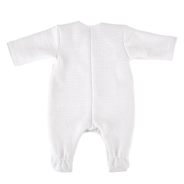Luxe gewafeld jersey kruippakje. Het pakje is aan de voorkant versierd met een delicaat borduurwerk van Theophile & Patachou. Het pakje past perfect bij alle items uit de Cotton White collectie. En is zowel draagbaar voor een jongen als meisje.
