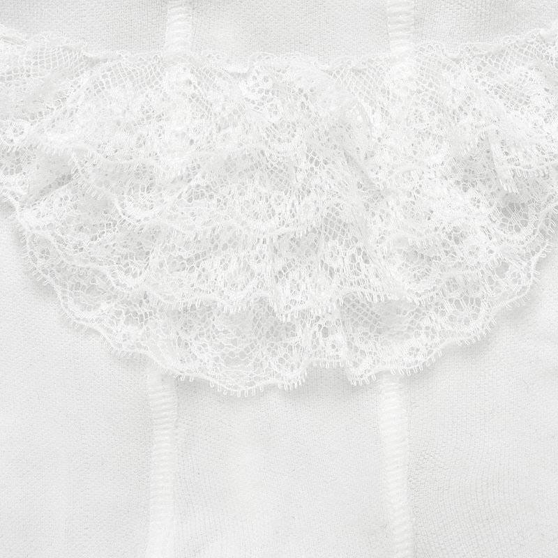 Maillot voor babymeisje met een elastische taille. Deze maillot is een essentieel accessoire en biedt veel comfort en veelzijdigheid. Decoratieve elementen: geborduurd lint, decoratieve ruches.