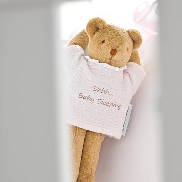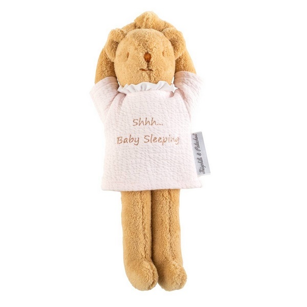Shhh... baby sleeping de perfecte manier om te laten zien dat je kindje ligt te slapen.Afmeting: 26 cmKleur: Camel/Roze