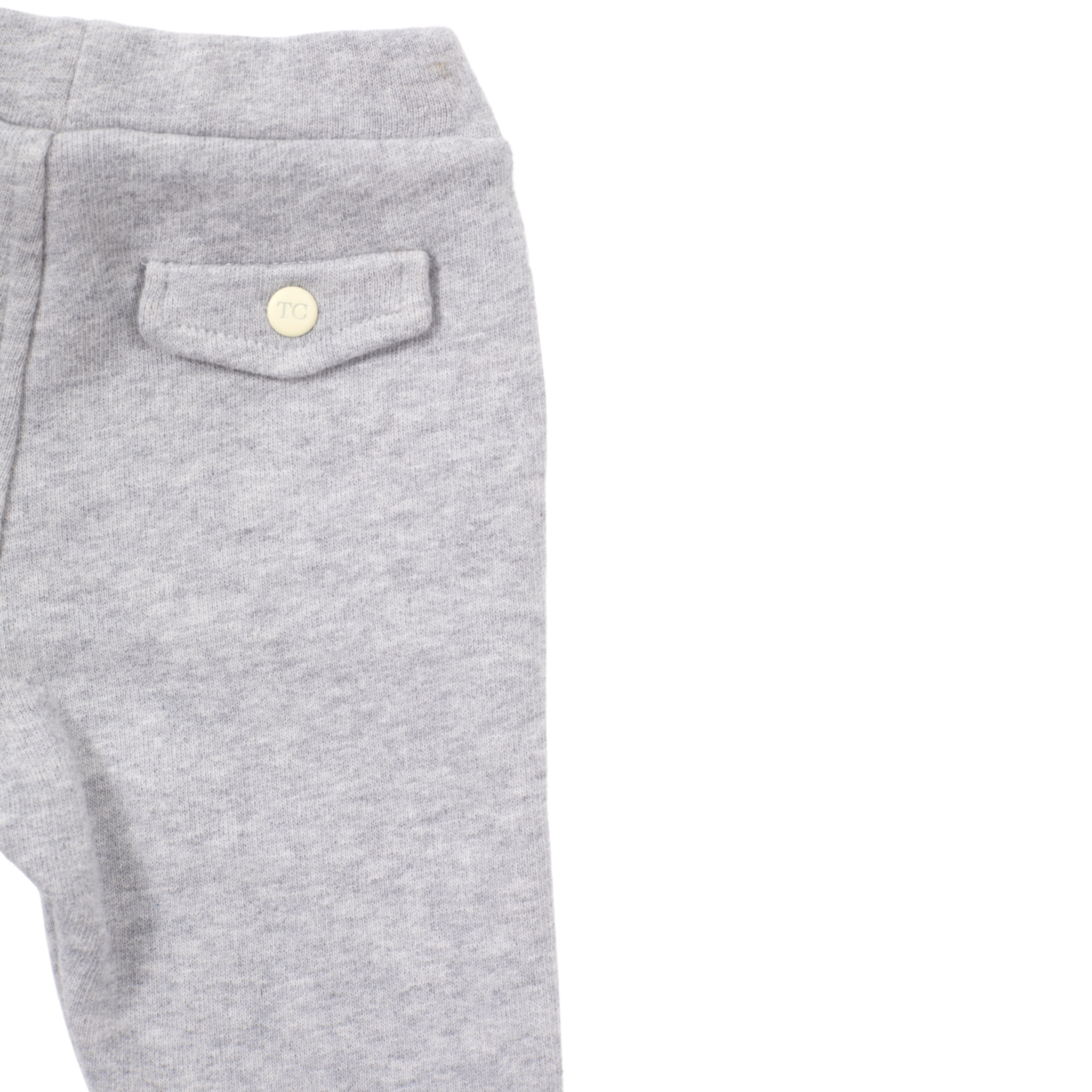 Stoere jogging pantalon pantalon van het merk Tartine et Chocolat, de broek heeft een licht gemêleerde grijze kleur en heeft een verstelbare tailleband d.m.v. een koord en heeft een stoer (show) zakje aan de achterkant. Het broekje zit heel comfortabel door de zachte stof. Het broekje heeft een mooi bijpassend vest en andere passende items uit de tennis lijn van dit merkKleur: Grijs