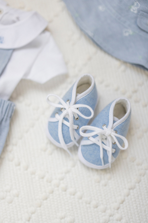 Super zachte pre-walk gympen van het merk Tartine et Chocolat hebben een ademende katoenen binnenzool. Deze tijdloze schoentjes hebben een klassieke stijl die past bij elegante outfits. De schoentjes sluiten d.m.v. een veter en zijn van een zachtblauwe denim kleur.