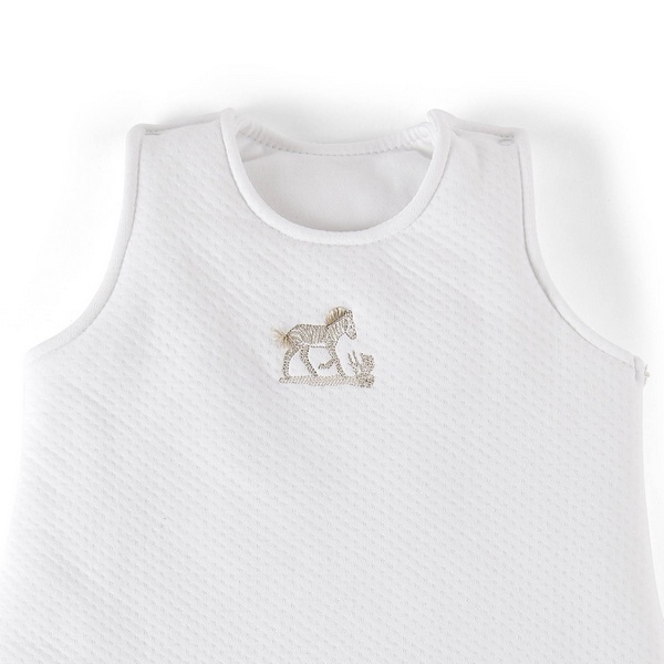 Mooie slaapzak van het merk Theophile et Patachou. De slaapzak past perfect bij alle items uit de Safari lijn van dit merk. De slaapzak is gemakkelijk aan en uit te trekken d.m.v. de drukknoopjes bij de schouders. De slaapzak is draagbaar van 0 t/m 4 maanden.Afmeting: 60cmKleur: Wit