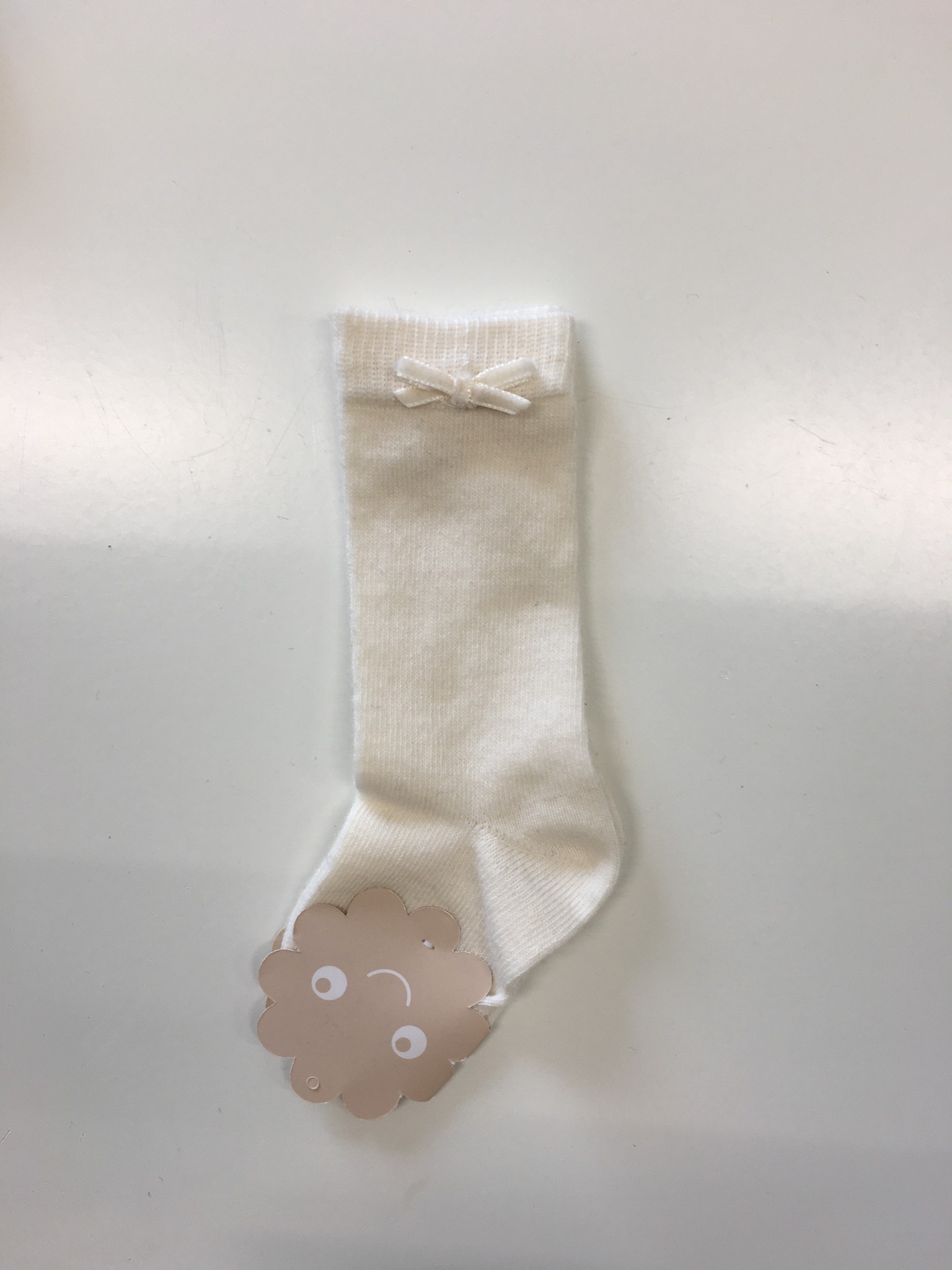 Off white sok met een klein fluwelen strikje. Van het merk Patachou.