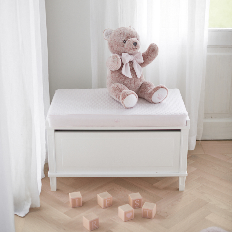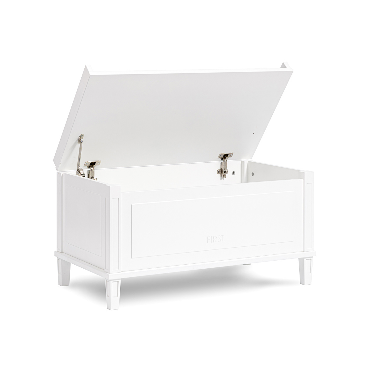 Alle binnenste lagen van de First lades zijn gemaakt van stevig eco-MDF voor duurzaam gebruik. De speelgoedkoffer is uitgevoerd zonder matras, deze is wel apart te bestellen in diverse kleuren.De speelgoedkoffer is gedeelte voor gemonteerd en gemakkelijk in elkaar te zetten, bestaat uit wit MDF met ondersteunende zijkanten, softclose bovendeel van de bovenkant. Het is gemaakt van geverfde vezelplaat (MDF) en spaanplaat.