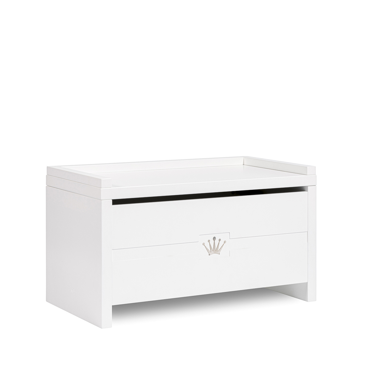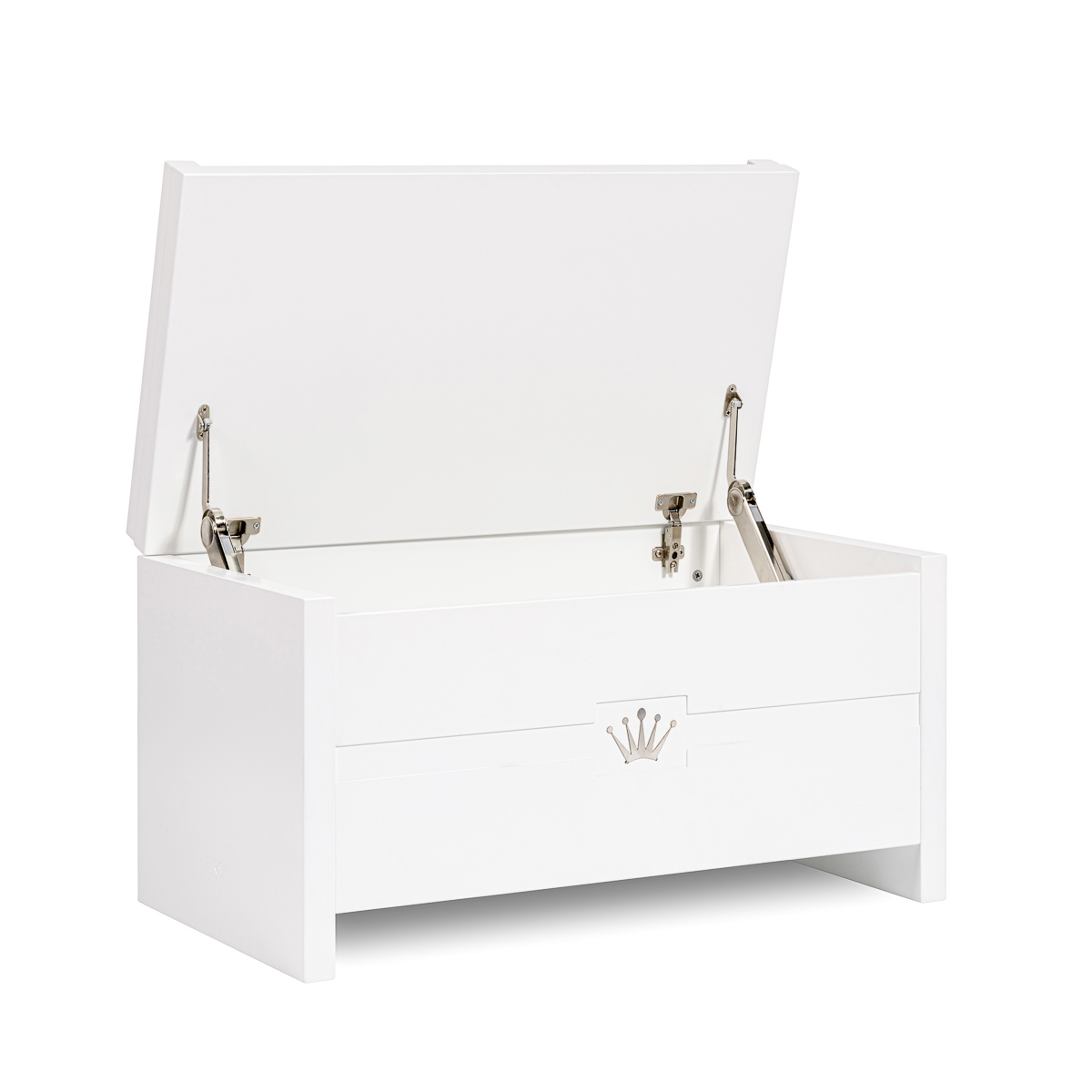 Alle binnenste lagen van de First lades zijn gemaakt van stevig eco-MDF voor duurzaam gebruik. De speelgoedkoffer is uitgevoerd zonder matras, deze is wel apart te bestellen in diverse kleuren.De speelgoedkoffer is gedeelte voor gemonteerd en gemakkelijk in elkaar te zetten, bestaat uit wit MDF met ondersteunende zijkanten, softclose bovendeel van de bovenkant. Het is gemaakt van geverfde vezelplaat (MDF) en spaanplaat.