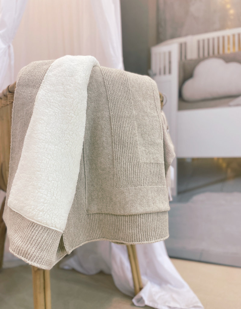 Deze prachtige deken is naast dat hij mooi is ook nog eens heerlijk warm. Deze wolmix deken is gevoerd met een zachte teddy fleece. Hij is uiteraard ook perfect te gebruiken voor in de wieg, kinderwagen, box of maxicosi