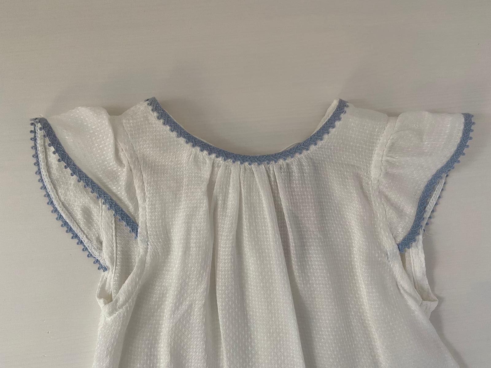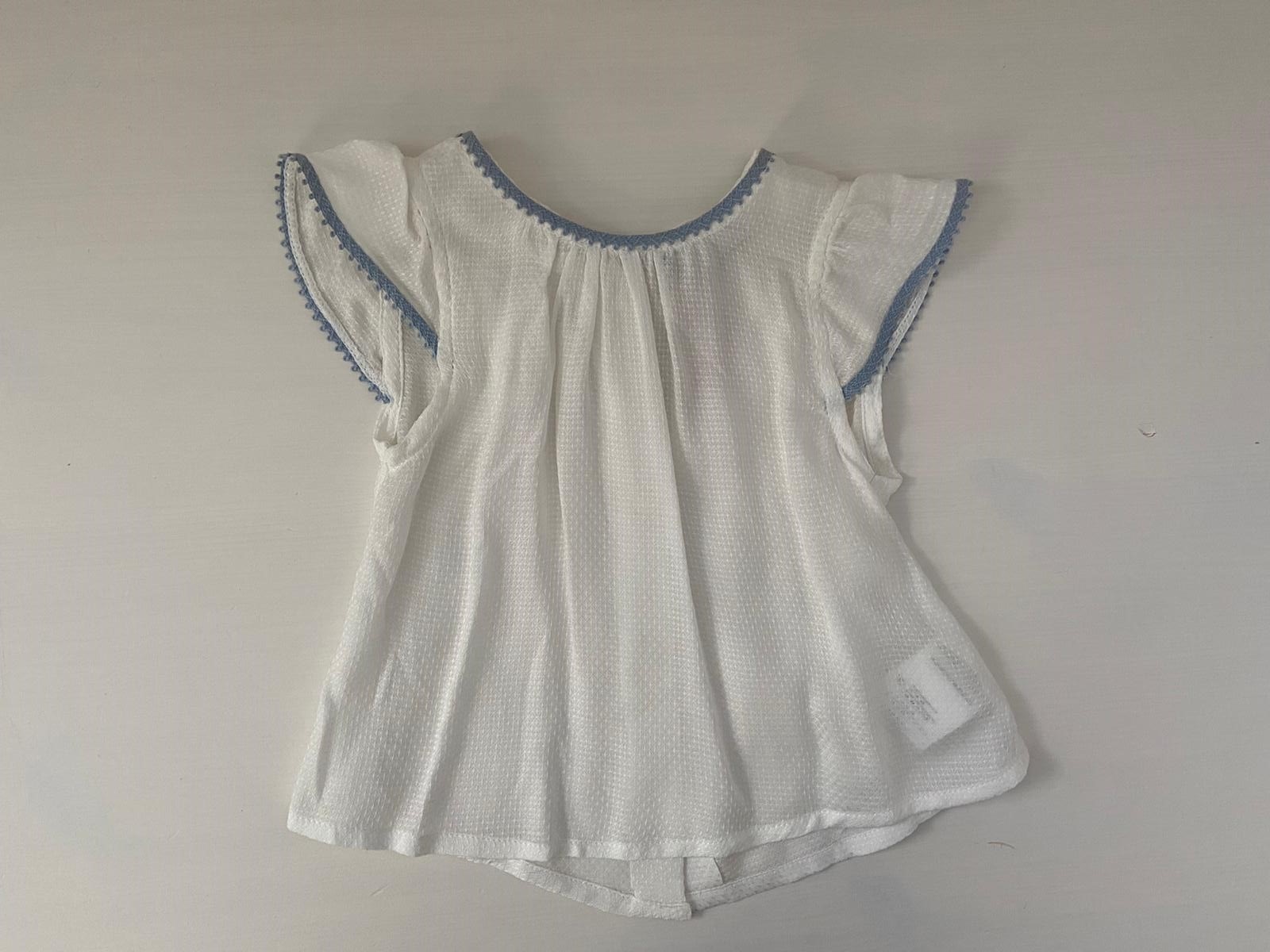 Witte blouse met blauwe randen voor meisjes. Van het merk Patachou.