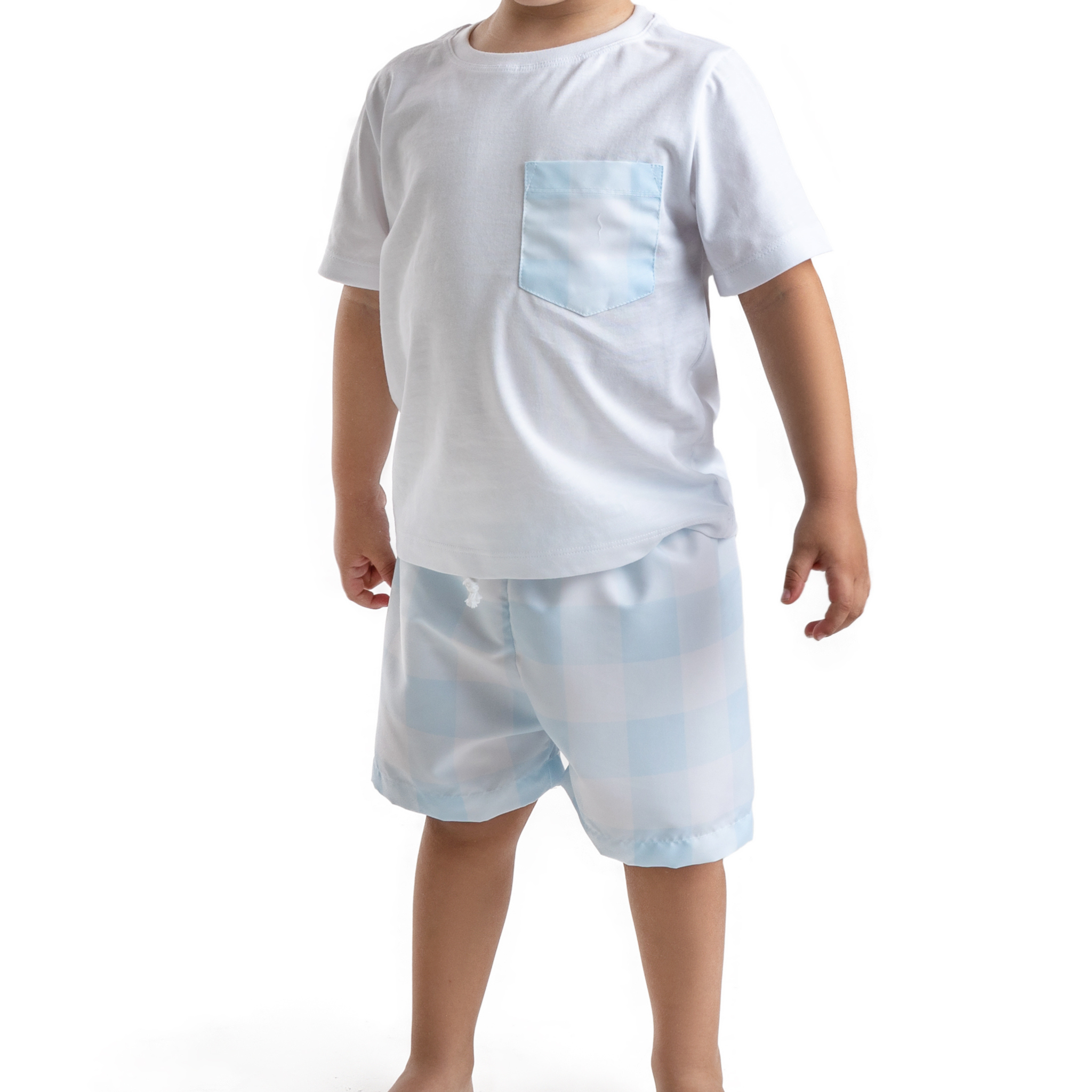 Zwemshort voor jongens de short is mooi te combineren met het t-shirt welke ook het ruit detail heeft.